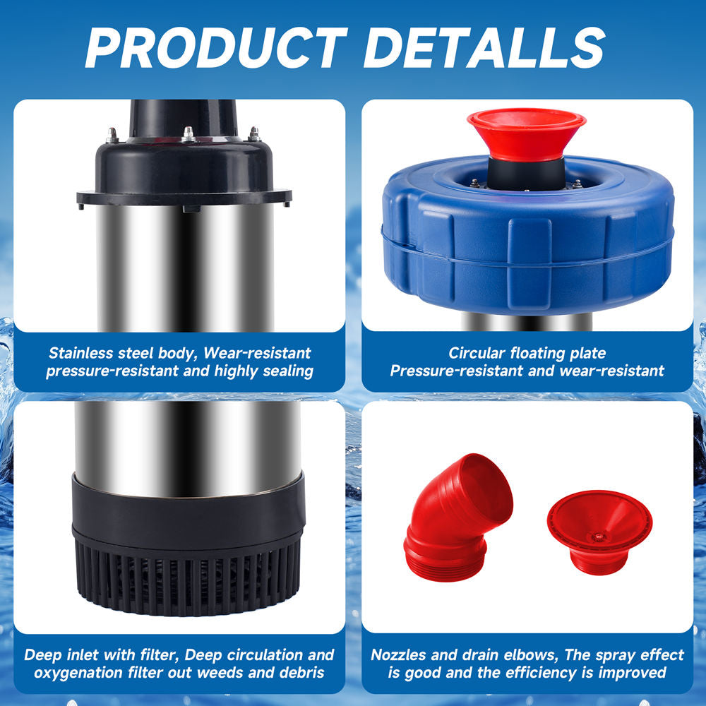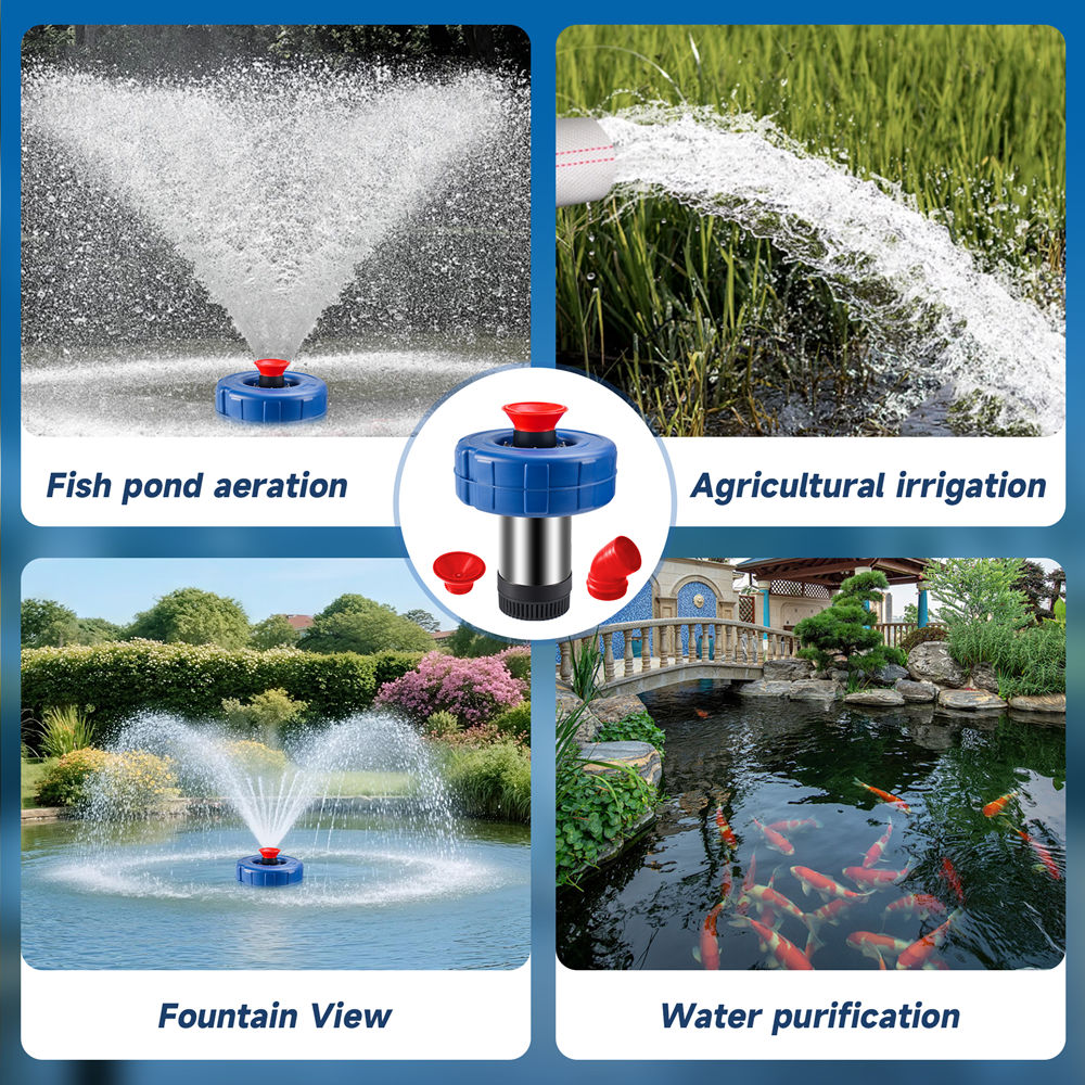 - 【High-performance pond fountains】: Equipped with a 750W, 1HP /750W pump, this aerator delivers an impressive water flow of up to 15,000 GPH.It aids water circulation and helps maintain basic water quality in irrigation, aquaculture etc